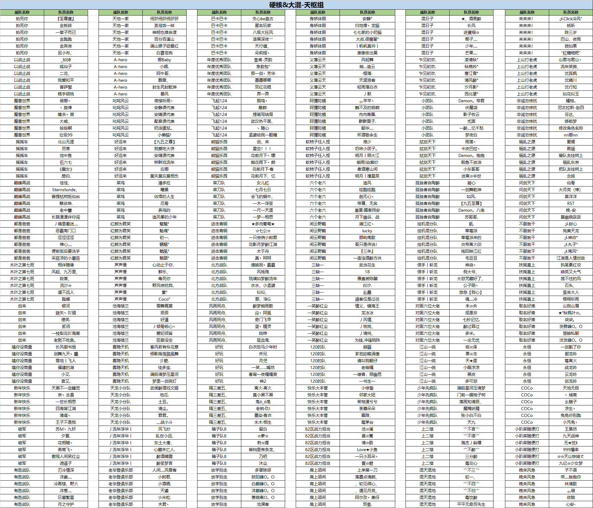 4月18日巅峰拭剑战队详细名单如下(角色信息以及战队信息已实际比赛服中为准):
